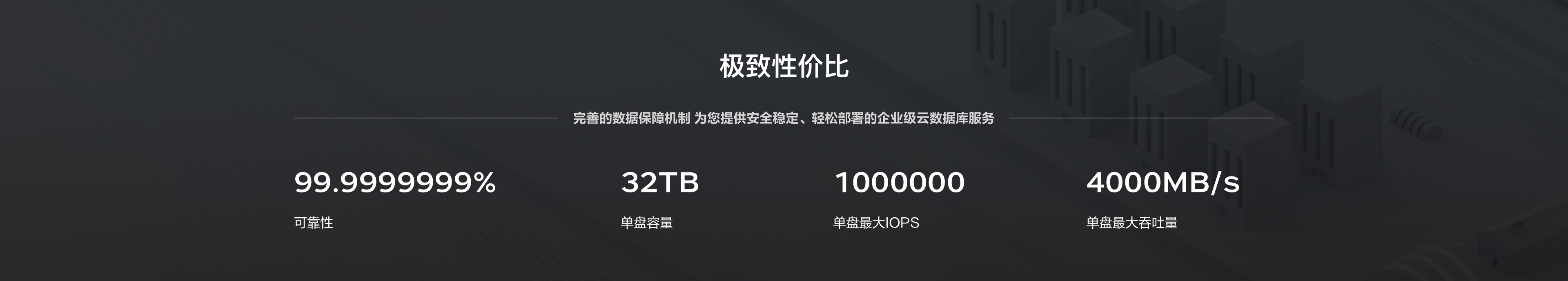 提供增强型SSD、通用型SSD、性能型SSD、容量型HDD,四种云硬盘选择。另外,后续即将推出的极速型 SSD 云硬盘采用最新一代自研存储引擎搭配 NVMe 标准 SSD 硬件,单盘最大提供1000000随机 IOPS、4000MB/s 带宽能力及稳定低延迟,助您轻松部署 I/O 密集型业务。目前“增强型SSD”正在受邀内测中,欢迎您试用。