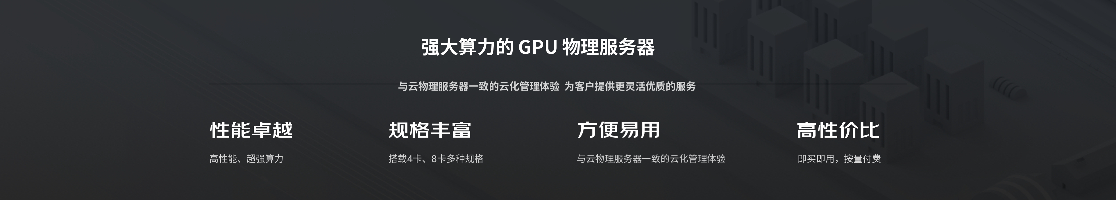 GPU云物理服务器采用和云物理服务器一致的云化管理和操作,功能强大,无需额外学习。